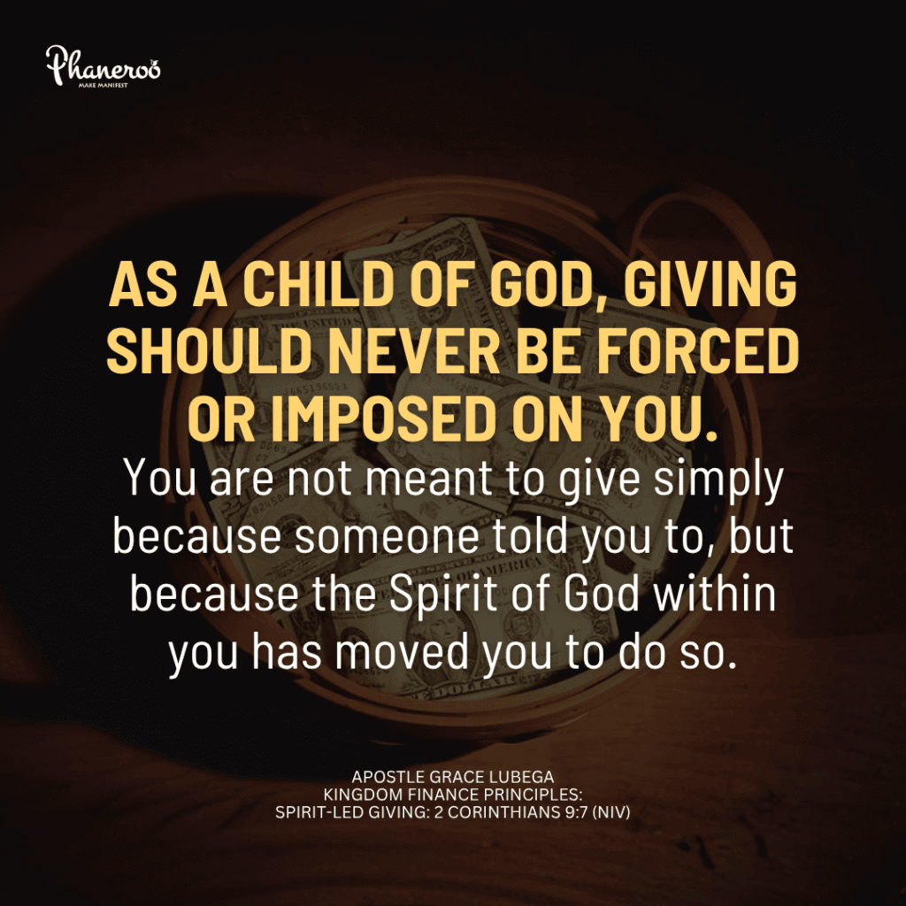 As a child of God, giving should never be forced or imposed on you. You are not meant to give